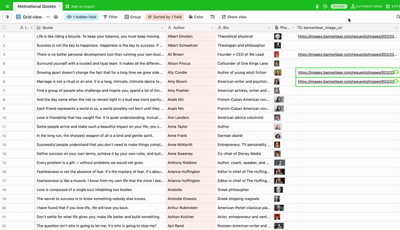 In order to make this tutorial friendly to free trial users, I have prepared a pre-populated Airtable with just 25 motivational quotes to try out on your free trial.