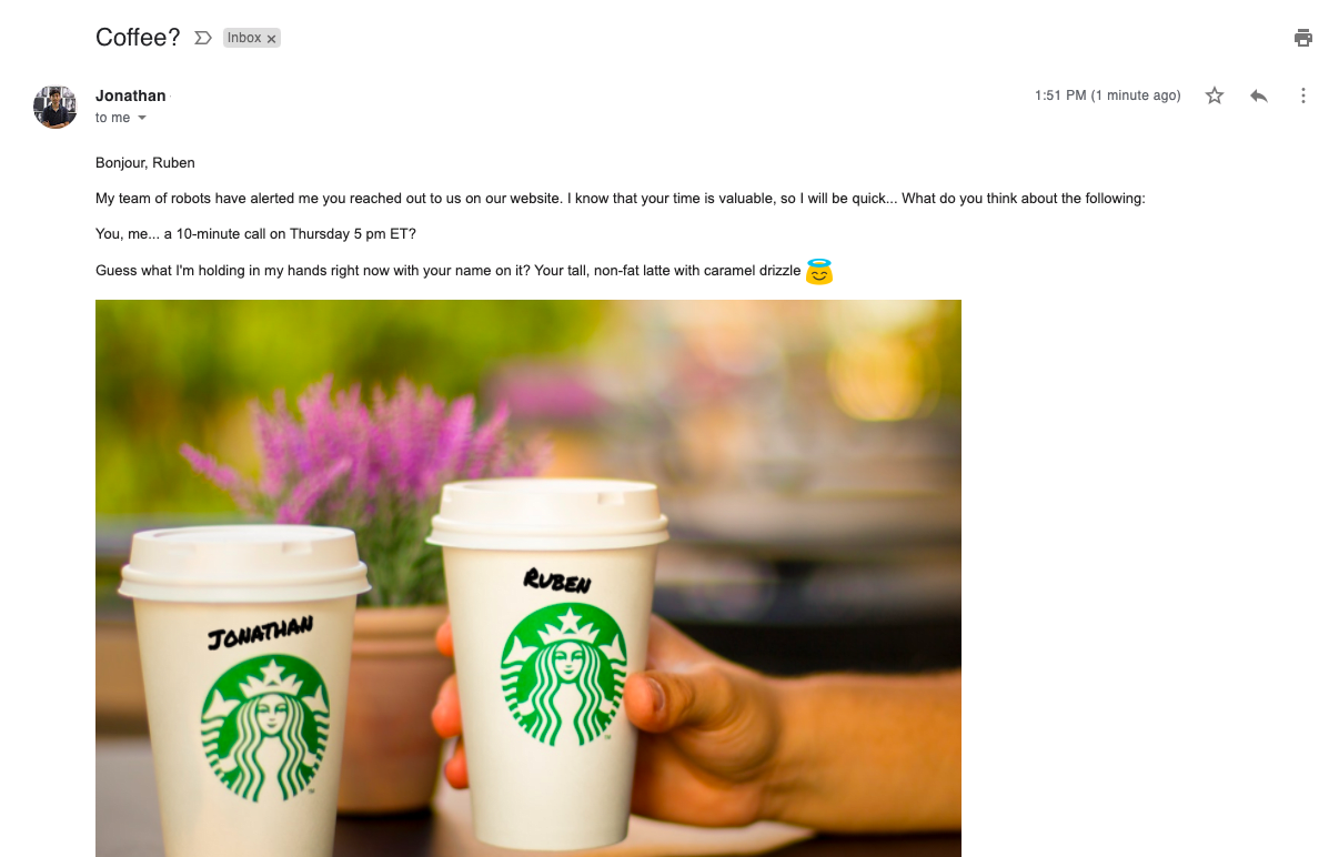 This is just an example of how you can create a personalized email for your prospects. You can get as creative as you want with your campaigns. You can try these things out next: